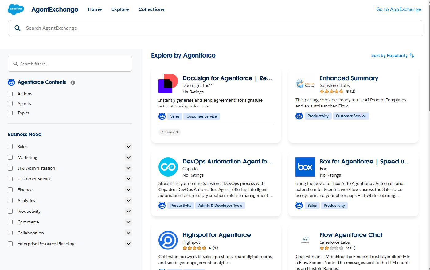 AgentExchange is a fascinating idea that’s not quite found its audience yet. The listings exist, but the lack of reviews suggests few orgs are actively experimenting with these tools—or if they are, they’re not talking about it publicly yet.