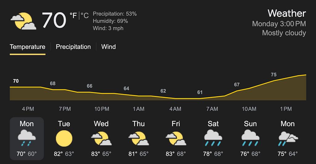 With warm and humid weather during the Summer, for this region, anticipate Low-to-Mid 80s during the day, followed by Low-to-Mid-60s leading up to the night. Rainfall showers show up a few days before and after the event but in case you are worried, sneak in a light umbrella to cover all your angles. There may be some cloud cover but nothing to worry about.